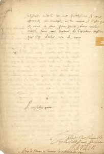 Seule lettre connue, citée par Raoul Bonnet qui n'a pu en reproduire la signature (vendue par Eugène Charavay le 14 avril 1886).