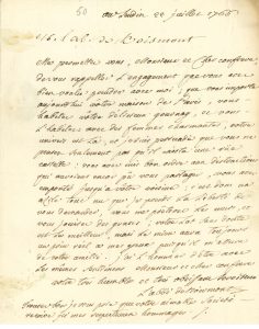 Le Landin 22 juillet 1766, à l'abbé ALARY. Il le prie de lui prêter sa maison de Paris, un «azile tout nu», pendant que son confrère séjourne à Gournay avec des femmes charmantes: «vous me prêteres les murs, et vous jouires des graces»...