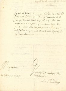 • une P.S., signée également par le Chancelier Séguier, émargement sur un rôle de dépenses pour son traitement comme médecin ordinaire du Roi en avril 1665 (vélin, 3 p. in-4) ; plus