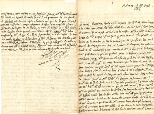 M. de Monchamps s’engage à rembourser 2000 livres à la fin du mois de juin prochain, car il touchera entre-temps des sommes de l’Abbé de Fécamp, de Messieurs de Malte et du Cardinal d’Estrées : « il ne pretend pas toucher un teston sur tout cela, & que tout vous est destiné », sous peine de céder ses livres… Huet encourage à accepter cette offre, sous réserve de quelques explications sur « l’article des livres », puis passe aux affaires littéraires : une distinction entre deux leçons latines, son impatience de recevoir l’ode de M. du Périer, les vers de la Pigeonne. « Mr Du Four m’apporte le poëme du Comte de Cocolin. Il me mande que Mr Bigot luy a dit qu’Horace ne fit qu’une ode de la mesure de la mienne parce qu’elle ne fut pas goustée, je le supplie de me mander d’où il sçait cela, & si c’est des anciennes scholies d’Horace que je ne puis consulter, ne les ayant point icy. Quoy qu’il en soit, je suis estonné que cette mesure ne vous agrée pas »… Et de se référer aux poètes tragiques grecs, à Eschyle et à Terentianus Maurus, qui « adjouste qu’Horace a changé agreablemt une ode de ce genre pr Neobule : Simili lege sonantes numeros et Neobule dedit uno/ Modulatus lepide carmine Flaccus. Vous voyez que cette mesure ne luy deplaisoit pas, & comme vous savez il n’avoit pas l’oreille ny le goust mauvais. Je ne scais pourquoi vous me parlez de Sicelicon, et de son origine. J’aurois cru que la virgule est ainsi nommée de sicilire, couper, separer, diviser, parce qu’elle separe une partie de la periode de l’autre »… Etc.