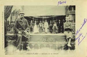 Pas De Calais 4 cpa : Paris Plage (guignol), Crequy (fabrication des louches), Wimereux (train Renard), Saint Omer (devanture de commerce - carte photo)