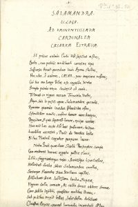 Poème autographe, Salamandra. Ecloga, [1709] ; 4 pages petit in-4 ; en latin.