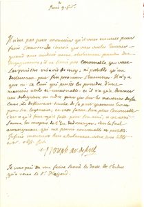 1747-1748, à l’avocat Le Paige, à propos d’une œuvre de charité : « quand vous voudriés meme absolument prendre des engagemens, il ne seroit pas convenable que vous les prissiés vis-à-vis de moy, ni possible qu’un desservant put s’en procurer l’execution. Il n’y a que M. le Curé qui puisse les prendre d’une manière utile et convenable »…