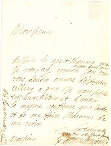« Despuis le gentilhomme que je vous ay envoie despuis deux jours jay creu vous devoir encore despescher celluy a quy je vous suplie tres humblement d’avoir la mesme confience qu’a l’autre »…