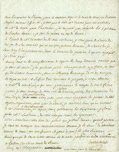 Après avoir donné des instructions pour la vente de sa maison de Grignon, il prie son correspondant de remettre à PANCKOUCKE la deuxième partie de ses Souvenirs du coin du feu, de toucher ses honoraires pour le dernier mois de 1792 et de les remettre à Mme de Montigni [sa belle-mère], qui habite son appartement à Paris, où il faut faire un état de tout ce qu’il y a dans le secrétaire, avec des comptes précis. « Ce qui regarde l’académie consiste en un sac de 450 jettons ; une bourse ou sont trois medailles dont l’une est en or ; un sac de 600££ en argent qui reviennent au donnateur du prix pour l’éloge de Dalembert ; et le paquet d’assignats sous envelope dont la suscription est de votre main ; plus le petit cachet de l’académie »… Il le charge de plusieurs commissions financières, puis le prie de copier les deux derniers contes qu’il lui a remis : « J’ai quelques petits changements a y faire ; et lorsqu’ils seront transcrits, vous m’obligerez beaucoup de m’en envoyer la copie au net […]. Je vous envoye de mon coté les deux dernieres parties des Souvenirs du coin du feu j’en crois l’ecriture assez nette pour vous épargner la peine de les copier. Cependant, pour plus de sureté, je voudrois bien qu’en livrant à Mr Panckoucke successivement les copies, vous gardassiez les originaux »… Il donne encore des instructions pour des affaires d’argent, et précise l’ordre des premières parties des Souvenirs :