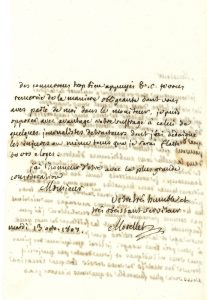 13 octobre 1807, à Jean-Louis LAYA, l’assurant que sa candidature académique sera la bienvenue, évoquant L’Ami des lois, et le remerciant de son article obligeant dans le Moniteur… Mardi, renvoi d’une épreuve « corrigée pro viribus meis je suivrai votre conseil pour les mensonges politiques mais il faudra que vous m’aidiez. Je me repens d’avoir eu cette pensée d’imprimer ces rapsodies »…