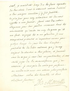 « Vous m’apprenez Monsieur que l’Academie vient de me faire un honneur, au quel je ne pouvois pretendre que par le seul desir de le meriter. Elle vous a sans doute proposé de me donner, par les lettres que vous m’avés ecrittes, un modelle du stile propre a un parfait Academicien ». Il charge Dubos de présenter sa reconnaissance à l’Académie : « Le bonheur de participer au merite de ceux qui la composent, l’idée séduisante de jouir de leurs succès, la gloire de mesler son nom avec des noms seurs de l’immortalité, la certitude de s’en faire un par le seul titre d’academicien, tous ces avantages que je vais acquerir m’inspirent un sentiment de vanité dont je ne crains point de faire l’aveu, parce que la reputation de l’Academie sçaura toujours le justifier »… Etc.