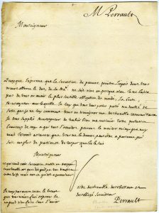 PERRAULT Charles (1628 1703) conteur et critique, il était Contrôleur Général de la Surintendance des bâtiments; membre fondateur de l'Académie des Inscriptions en 1663 [AF 1671, 23e f]. —