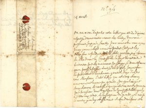 L.A.S. « Perrot Ablancourt », 14 août [1664], à Gilles ménage, chez Mme la comtesse de La Fayette à Tancourt ; 1 page et quart in-8, adresse avec petits cachets de cire rouge aux armes brisés.