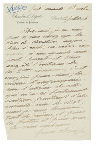 conservées (reliure de l'époque). .Edition originale Sans doute le plus célèbre des pamphlets antisémites, réimprimé continüment pendant des décennies. Drumont n'avait pas inventé l'antisémitisme mais il eut le talent pamphlétaire de ramasser tous les stéréotypes et d'en faire un système d'explication universelle. Edouard Drumont (1844-1917) a profondément marqué, par son reuvre et par sa personnalité, de nombreux contemporains au rang desquels il faut placer ses disciples respectueux Charles Maurras, le jeune Georges Bernanos et Léon Daudet (Julliard & Winock, Dictionnaire des intellectuels franfais, 2009, pp. 467-469). ENVOI AUTOGRAPHE SIGNE DE L'AUTEUR AU JOURNALISTE ET ECRIVAIN HENRI FOUQUIER (1838-1901). Dos passés.