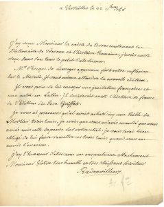 22 novembre 1758, il a bien reçu le Dictionnaire de Trévoux, l’Histoire romaine et le petit catéchisme. « Mr l’Eveque de Limoges approuve fort votre reflexion sur le Moreri, il vaut mieux attendre la nouvelle edition. Il vous prie de lui envoyer une Imitation françoise et une autre en latin. Il desireroit aussi l’Histoire de France de l’édition du Père Griffet »…