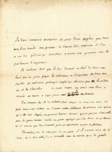 Rare lettre au sujet de Voltaire.