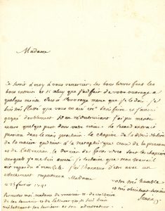 Il la remercie de l’envoi de son ouvrage [Institutions de Physique, 1740] : « Les bons livres font de bons extraits et si celuy que j’ai fait de votre ouvrage a quelque merite c’est à l’ouvrage meme que je le dois ». Un second extrait paraîtra le mois suivant. « Le chapitre de la divisibilité de la matière qui tient à la metaphisique ceux de la pesanteur et de l’attraction, le dernier des forces vives sont les chapitres auxquels je me suis arreté. Je souhaite que mon travail ait repondu à mon zele ». Il la prie de « remercier M. de VOLTAIRE de son souvenir et de l’assurer que je suis bien veritablement son serviteur et son admirateur »...