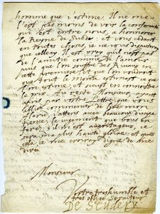 L.A.S. « De Scudery », Paris 15 mai 1654 ; 2 pages in-4 (petit manque sur un bord avec perte de quelques lettres).