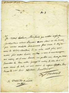 C’est la seule lettre connue de Tourreil, d’après Raoul Bonnet (vente Étienne Charavay, 27 mars 1874).