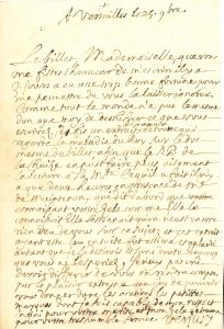 Il veut l’informer de la « trop bonne fortune » qu’a eue le billet qu’elle lui a écrit : « Comme tout le monde n’a pas le mesme don que moy de dechifrer ce que vous escrivez, j’en fis un extrait de ma main de tout ce qui regarde la maladie du Roy sur le dos mesme du billet, afin que le RP de LA CHAIZE en pust faire plus aisement la lecture a Sa Mte. Ce qu’il a fait il n’y a que deux heures en presence de Me de MAINTENON, qui dit d’abord que connoissant vostre zele comme Elle le connoissoit Elle sestonnoit qu’on n’eust encore rien veu de vous sur ce sujet ; et cet extrait ayant este leu ensuite fut estimé et aplaudi autant que je le desirois et sans doute beaucoup que vous ne l’esperiez »...