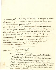 11 février [1776], priant un ami de lui adresser l’ordonnance destinée à Jean-Pierre HOUEL et des lettres de recommandation de M. de Vergennes : « il partira vers le 18 de ce mois pour se rendre directement a Naples »…
