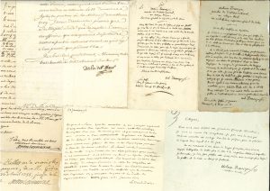 Urbain DOMERGUE (6, 1777-1803, dont une note concernant ses ouvrages de grammaire). Jean-Jacques DORTOUS de MAIRAN (2, 1754-1766). Nicolas-François DUPRÉ de SAINT-MAUR (1751 ; on joint 6 pièces de membres de sa famille). Emmanuel-Félicité de Durfort duc de DURAS (4, 1771-1774). Jean, abbé D’ESTRÉES (Madrid octobre 1703).