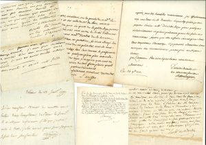 Louis-Laurent ANISSON (1743, à M. de Thuret). Jacques ANISSON-DUPERON (1772, à M. d’Esparron. François-Thomas BACULARD D’ARNAUD (3, 1779-1786, une à l’avocat Duchosal). Gaspard Guillard de BEAURIEU (« Dernière lettre de Beaurieu »). Joseph-Elzéar BERNARDI (Carpentras 1774, au Dr Calvet). Antoine, chevalier BERTIN (1781, au président Dupaty). François-Georges Mareschal, marquis de BIÈVRE (à M. de Vaudoyer). Adrien BLIN DE SAINMORE (2, à Dulaure au sujet de la Société philantropique, et 1801). Pierre-Nicolas BONAMY (2, 1764 et s.d.). Jean-Nicolas BOUILLY (Orléans 1791, au libraire Brunet). Gabriel BROTIER (manuscrit autogr., Éloge historique de M. Guérin, et note a.s., 1787). Jean-Thomas BRUGUIÈRE (1800, à Ducray-Duminil).