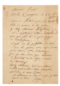 pour atentat contre la persone de Roi il fue blaissé au moment quil mi le feu à sa machine emfernale et conduit à la Consiergerie depui le 28 juillet 1835. Il croarait manquer à son devoir, s'il n'en rendrait pas justice aux sóurveglanc quil lui fure destiné par ordre de Ministre de l'intérieur, et monsieur le Préfet de Police, atteste que le nomé Allain sourveglant à la Consiergerie que riens à estait négligé par lui, pour sourvenir au dévant de tous mé soin et que l'houmanité éxigé dans ma grave maladie par conséquence je rends justice que le icci nomé il se conduit d'unne maniere, et quil est exant de reproche”... ON joint une lettre signée de la veuve LASSAVE, mère de sa maitresse, au Président du Conseil, 10 octobre 1835, demandant une indemnité à la suite de sa détention ; plus un fac-similé, et une lithographie représentant Fieschi et sa machine infernale (sous chemise autographe du baron de TREMONT).