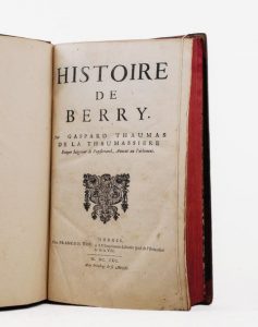 THAUMAS DE LA THAUMASSIERE (Gaspard). Histoire de Berry. Bourges, François Toubeau, 1689.