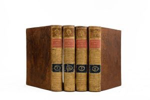 4 vol. in-8 basane racinée ép., dos lisses ornés, p. de titre et de tomaison en veau rouge et noir, tr. paille.