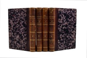 4 vol. (sur 5) demi-veau brun ép., dos lisses filetés, titre et tomaison dorés. Frottés aux dos. Incomplet du 5e et dernier volume. Rare édition donnée en prime aux abonnés du Constitutionnel.