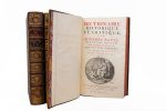 On y ajoute : CHAUFEPIÉ (J. G. de), Nouveau Dictionnaire historique et critique pour servir de supplément ou de continuation au dictionnaire historique et critique de M. Pierre Bayle. Tome troisième. Amsterdam et La Haye, Chatelain, Uytwerg, Changuion, etc., 1753. 1 vol. (sur 4) in-folio veau ép., dos à nerfs orné, p. de titre et de tom. Qqs lég. frottés. ex-libris "Bibliothèque du Palais". -- 40 / 50 €