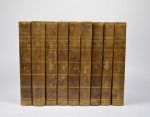 9 vol. (sur 15) demi-basane post. (début XIXe s.), dos lisses filetés, titre et tom. dorés.