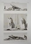 La Description de l'Egypte est le résultat de la collaboration des savants, artistes et techniciens qui suivirent Bonaparte en Egypte. C'est l'ouvrage le plus monumental jamais consacré à un peuple. Monge et Denou en furent les maîtres d'œuvre. La quantité et la précision des informations fournies surpassaient tous les travaux qui avaient pu être publiés avant l'expédition (récits et dessins de voyageurs, ouvrages). Les monuments étaient relevés et décrits avec un souci de précision remarquable. Même les inscriptions dont on n'avait pas encore percé le mystère furent reproduites avec une grande fidélité. La Description de l'Egypte constitue encore de nos jours une source documentaire de premier ordre: nombre d'édifices représentés sur ces planches furent entièrement détruits par la suite. -- 10 000 / 15 000 €