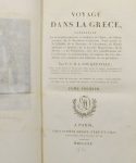 Grèce - POUQUEVILLE (François Charles Hugues Laurent). Voyage dans la Grèce, contenant la description ancienne et moderne de l'Épire, de l'Illyrie grecque, de la Macédoine circaxienne, d'une partie de la Triballie, de la Thessalie, de l'Acarnarie, de l'Étolie ancienne et Épistète, de la Locride Hespérienne, de la Doride, et du Péloponèse. Avec des considérations sur l'archéologie, la numismatique, les mœurs, les arts, l'industrie et le commerce des habitants de ces provinces. Paris, Firmin Didot, père et fils, 1820-1821.
