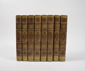 8 vol. in-8 demi-basane havane à coins post. (milieu XIXe s.), dos à nerfs orné de fleurons dorés et mosaïqués, titre et tomaison dorés.