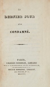 préface de son roman Le Dernier Jour d'un condamné. Il est suivi d'une ode par Alphonse de Lamartine, extraite de son poème Contre la peine de mort (au peuple du 19 octobre 1830), paru en 1830. Ce placard avait été imprimé par Houel cette même année, sous le titre de : La Peine de mort jugée. (Hatin, p. 483.- Vicaire, IV, 305.) On joint : - HUGO (Victor). Histoire d'un crime. Huitième édition. Paris, Calmann Lévy, 1877-1878. 2 volumes in-12, demi-basane de l'époque. On a relié en tête une lettre autographe signée de M. Bechardé à en-tête de la mairie de Limoges demandant l'autorisation de reproduire deux chapitres d'Histoire d'un crime afin de les distribuer aux élèves des écoles communales, la veille de l'inauguration d'un monument. Consentement autographe de Victor Hugo à la fin : "J'accorde l'autorisation demandée. Victor Hugo. Paris, 29 juin 1882.” La reliure porte au dos les lettres M. B. qui renvoient, à l'évidence, au rédacteur de la lettre. - La Peine de mort. Procès de l'Evénement. Discours de MM. Victor Hugo et Crémieux. Plaquette in-8, brochée, étui de demi-maroquin moderne. - Révision de la Constitution. Discours de Michel de Bourges et de Victor Hugo. Paris, Librairie nouvelle, 1851. In-8, broché.
