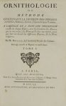 BRISSON (Mathurin Jacques). Ornithologie ou méthode contenant la division des oiseaux en ordres, sections, genres, especes & leurs variétés. [Ornithologia sive synopsis methodica…] A laquelle on a joint une description exacte de chaque espèce, avec les citations des auteurs qui en ont traité, les noms qu'on leur a donnés, ceux qui leur ont donné les différentes nations, & les noms vulgaires. A la suite : Supplément d'ornithologie [supplementum ornithologiae]. Paris, Bauche, 1760.