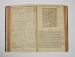 Importante illustration gravée sur bois : elle se compose de deux vignettes aux titres (marque de l'imprimeur), de 23 figures in-texte dont plusieurs à mi-page, de 6 tableaux généalogiques à pleine page ainsi que de nombreuses lettrines historiées ; le tout gravé sur bois.