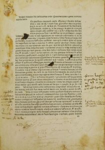 Annotations anciennes à l'encre. Galeries de vers marginales, mouillures, plusieurs feuillets restaurés.