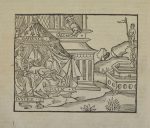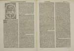 Importante illustration gravée sur bois : elle se compose d'un titre général en rouge et noir, de 4 titres de report en noir avec la marque de François Regnault, de 68 figures in-texte (certaines à pleine page) et d'innombrables lettrines. Texte en impression gothique sur deux colonnes.