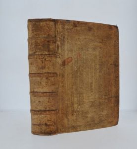 (clous ?) atteignant le texte en épaisseur sur la moitié du volume. -- 500 / 600 €