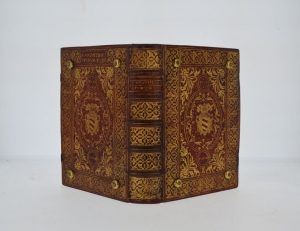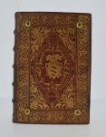 Reliure romaine attribuable à l'atelier vatican de MASTRO LUIGI, un des trois importants relieurs vaticans de la Renaissance avec Niccolo Franzese et Marcantonio Guillery, actif de 1535 à 1570 environ. Il exécuta des reliures pour la famille FARNESE et pour d'autres membres de la cour vaticane ; pendant la dernière période de sa vie, le maître travailla pour Pie IV et Pie V. La couleur rouge du maroquin, symbole de la liturgie catholique, exprime une sacralité qui renaît dans l'esprit de la Contre-Réforme et du Concile de Trente dont Pie V exigea l'application des décrets. -- 1000 / 1500 €