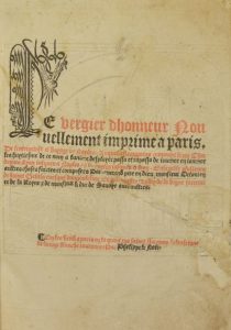 SAINT-GELAIS (Octavien de). Le Vergier dhonneur nouvellement imprime a Paris. De lentreprise et voyage de Naples. Auquel est comprins comment le roy Charles huytiesme de ce nom a baniere desployee passa et rapassa deiournee en iournee depuis Lyon iusques a Naples de Naples iusques a Lyon. Paris, Le Noir, sd [1520].