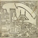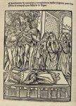 Importante et riche illustration gravée sur bois. Elle se compose d'un titre en rouge et noir orné d'un beau "L" historié au verso duquel se trouve une grande figure à pleine page, de 5 autres figures in-texte 1 à mi-page (ff. G6), 2 à 3/4 de page (ff. I2 & K3), et 2 à 1/3 de page (ff. M2 & X1), ainsi que de très nombreuses lettrines. Grande marque de l'imprimeur au verso du dernier feuillet.