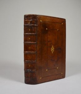 3 parties reliées en 1 volume in-folio, veau brun ép., dos à nerfs orné de petits fleurons dorés, filets estampés à froid encadrant les plats avec petits motifs dorés en écoinçons et fer central également doré. Titre, [6] ff., [1] f. bl., 250 pp., [3] ff., titre, [5] ff., 367 pp., titre, [5] ff., 435 pp., [3] ff.