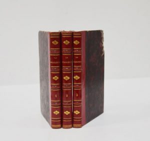 3 vol. in-12 de (1), 168, (1), 163, (1), 132 pp. demi-maroquin rouge postérieur (c. 1830), dos à nerfs ornés.