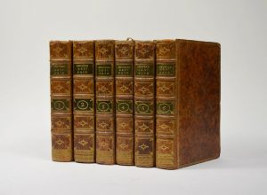 6 vol. in-8, veau marbré ép., dos à nerfs ornés, p. de titre et de tom. en maroquin vert, triple filet doré encadrant les plats.