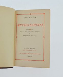 Curiosa - PIRON (Alexis). Œuvres badines. Précédées d'une étude bio-bibliographique par Fernand Mitton. Paris, aux éditions d'art de l'Intermédiaire du bibliophile, 1928.