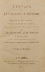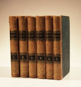 A la suite en reliure identique : Lettres de la Marquise du Deffand à Horace Walpole, depuis comte d'Oxford, écrites dans les années 1766 à 1780 ; auxquelles sont jointes des Lettres de Madame du Deffand à Voltaire, écrites dans les années 1759 à 1775. Publiées d'après les originaux déposés à Strawberry-Hill. 2 vol. in-8.