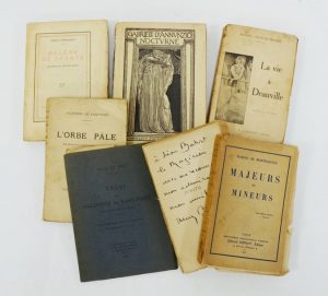 - D'ANNUNZIO (Gabriele), Nocturne. Paris, Calmann Lévy, 1922. In-8 br., couv. illustrée. Ill. de A. de Carolis. "à Léon Bakst, au grand voyant dionysiaque de la couleur et de la ligne, ce livre d'un aveugle angoissé et enivré par l'Invisible"