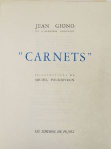 GIONO (Jean). Carnets. Illustrations de Michel Pourteyron. Éditions de Pujols, 1965.