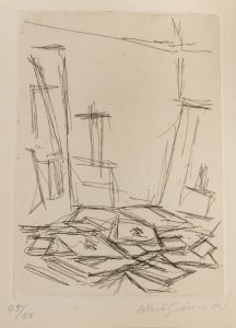 "Dans les livres que j’ai faits avec Giacometti, c’est par l’économie, la raréfaction du trait qu’il y a un rapport entre sa gravure et l’espace même du poème. Par exemple le frontispice du Moteur blanc rend compte du titre du livre : le centre de la gravure est constitué par un grand blanc qui peut être un ciel, ou le foyer qui appelle à traverser un paysage de papier épars." André du Bouchet cité dans "Poète de l’abrupt (Entretien avec André du Bouchet)" de Monique Pétillon, p. 126.