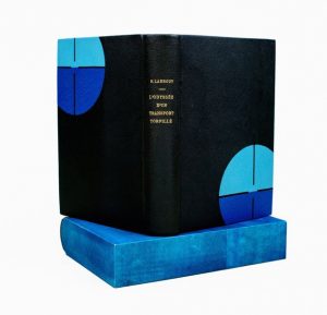 In-8 maroquin bleu marine, dos lisse, titre doré, décor sur les plats mosaïqué en maroquin bleu ciel et bleu roi représentant une visée de périscope, couv. illustrée et dos conservés, sous étui à rebords (N. Allainmat, 2013).